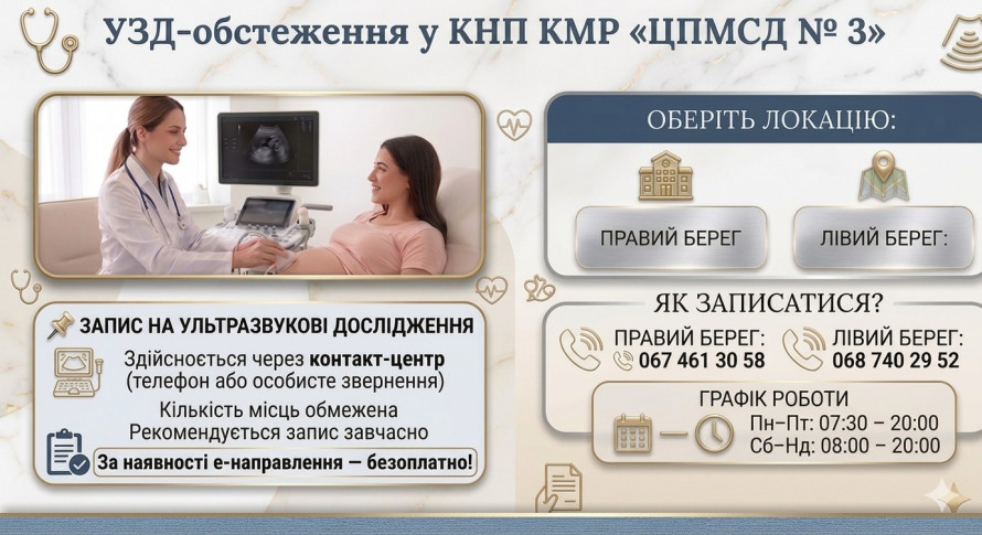 УЗД (ультразвукове дослідження) - це сучасний, безпечний та безболісний метод діагностики стану внутрішніх органів і тканин за допомогою звукових хвиль високої частоти. У нашому місті такі обстеження проводять досвідчені фахівці КНП КМР «ЦПМСД №3».