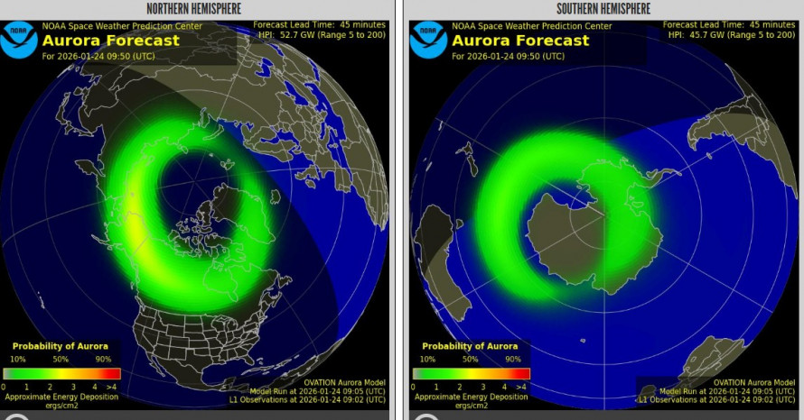 За прогнозами Національного центру прогнозування космічної погоди NOAA (США), 27 січня очікується нестабільна до активної геомагнітна активність, без значних штормів. Індекс Kp може сягати 3-4, що відповідає рівню "unsettled to active". Це означає можливі слабкі коливання магнітного поля, але не сильні бурі на рівні G1 чи вище для більшості регіонів.