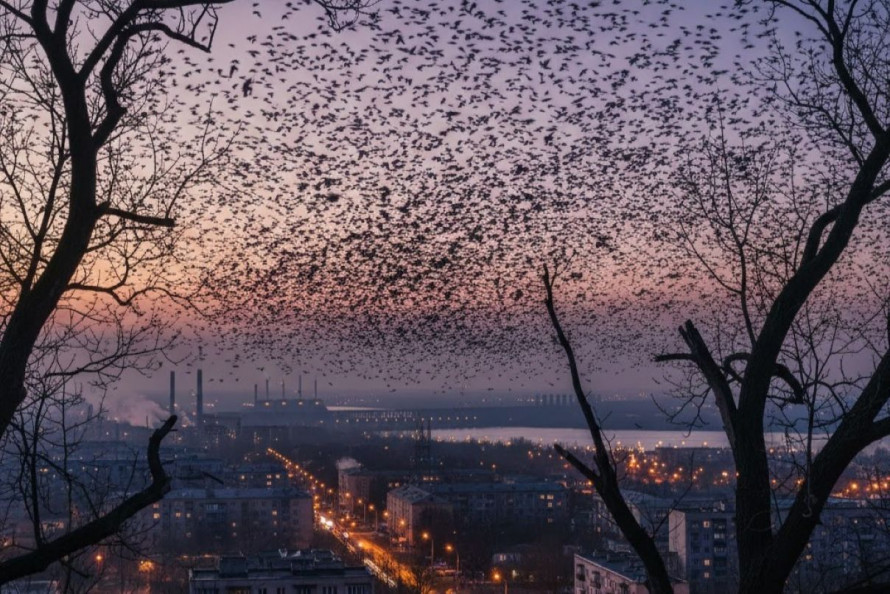 Мешканці Дніпра та сусіднього Кам’янського останніми днями все частіше спостерігають видовищне, а подекуди й моторошне явище: тисячі чорних птахів здіймаються у небо, утворюючи живі хмари. Це не кадри з фільму Хічкока, а природний цикл життя граків (Corvus frugilegus), які обрали промислові центри регіону для зимівлі.