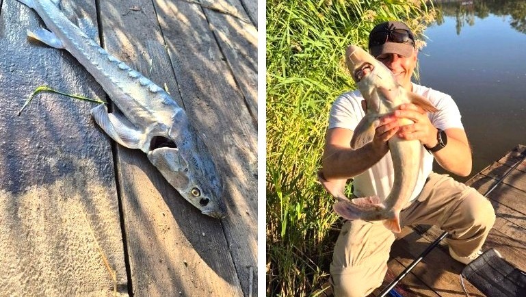 Рибалка з Дніпропетровщини на звичайну махалку випадково зловив червонокнижного осетра