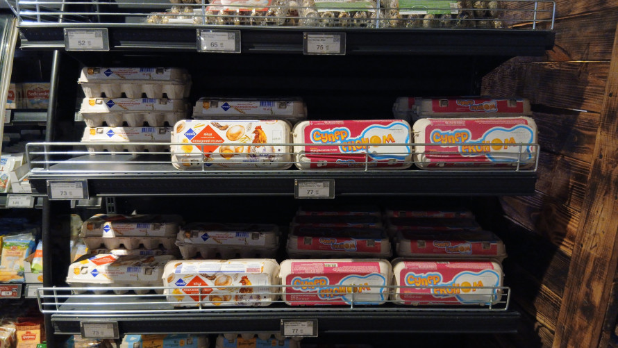 Новий магазин «Маркетопт» пропонує десяток курячих яєць від 64 до 78 гривень, а за поштучний товар – 5,80 гривень.