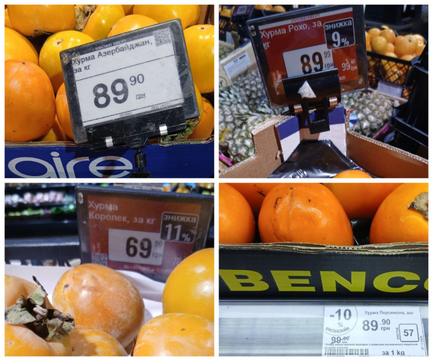 - АТБ-маркет: сорт "Піраміда" за акційною ціною - 69 грн/кг, сорт "Персимона" без акції - 100 грн/кг.