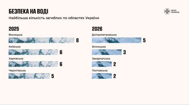 Згідно з даними ДСНС, станом на лютий 2026 року саме Дніпропетровська область має найвищий показник смертності на воді в Україні - 5 загиблих. Для порівняння, в інших областях ситуація наступна: Вінницька область - 3 особи та Закарпатська та Полтавська області - по 2 особи.