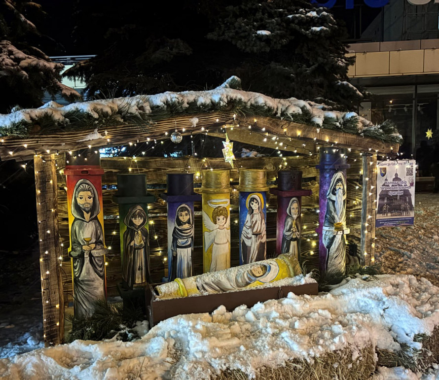 У центрі Дніпра з’явився різдвяний вертеп із фронтових тубусів як символ незламного духу