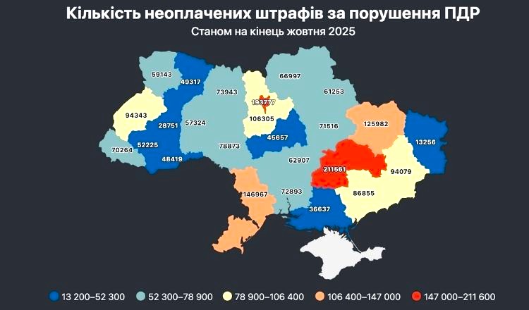 Загалом по Україні кількість несплачених штрафів ПДР сягнула 2 мільйонів - це на 6% більше, ніж наприкінці 2024 року. За час повномасштабної війни кількість боргів зросла на 43%. Часто штрафи залишаються несплаченими через те, що їх неможливо стягнути - водії змінюють місце проживання, ухиляються від реєстрації авто або ігнорують виконавчі провадження.