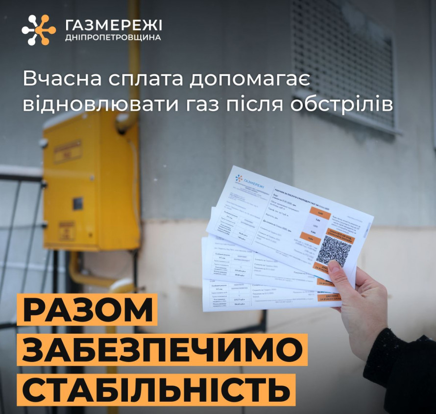 Фахівці компанії Дніпропетровської філії «Газмережі» підкреслюють: робота газорозподільної системи регіону залишається стабільною завдяки своєчасній оплаті, адже саме за ці кошти забезпечується діяльність усіх служб підприємства, здійснюється модернізація газової системи регіону та проводяться аварійно-відновлювальні роботи газопроводів, у тому числі після ворожих обстрілів.