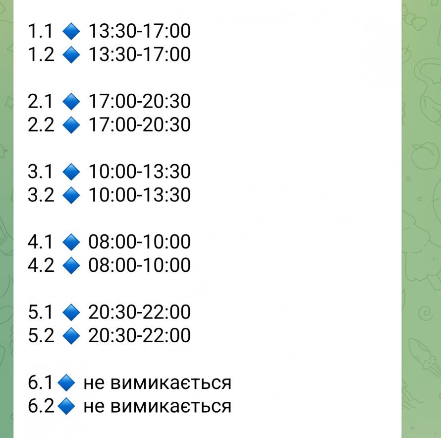Особливо важливо дотримуватися режиму економії в години пікових навантажень: з 08:00 до 11:00 та з 17:00 до 23:00. Це дозволяє уникнути аварійних ситуацій на локальних мережах під час масового ввімкнення електроприладів після відновлення живлення.