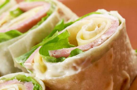 Рулет з лаваша з шинкою, листям салату та вершковим сиром