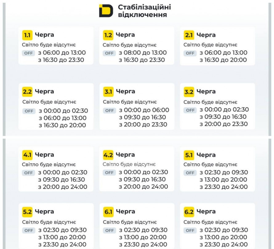 Графіки відключень на 21 листопада
