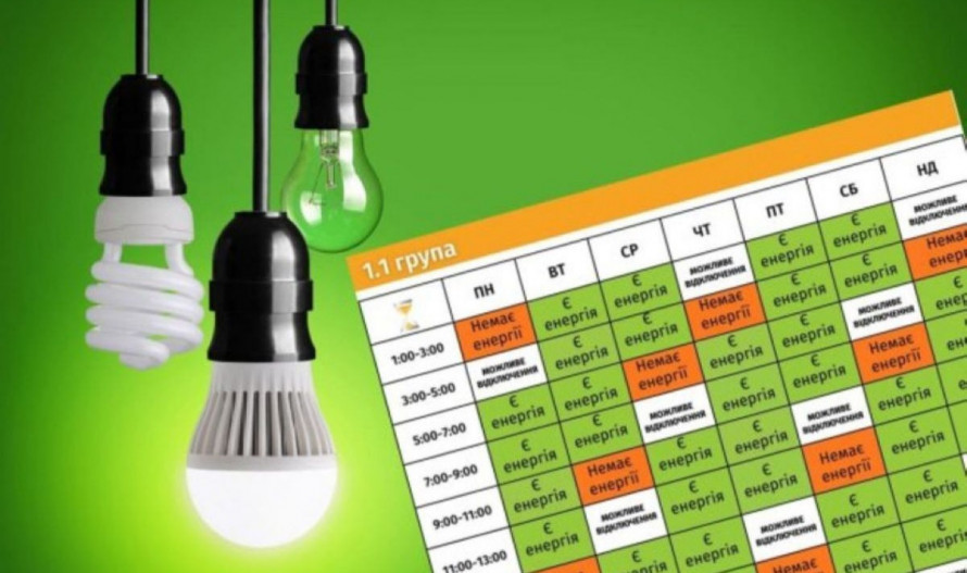 - 1.1 черга: з 00:00 до 01:00; з 15:00 до 18:30.