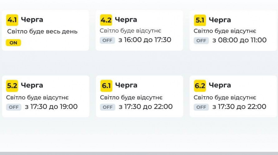 6.1 та 6.2 Черги: Ці дві групи мають найбільш тривалий вечірній період відключення – з 17:30 до 22:00.