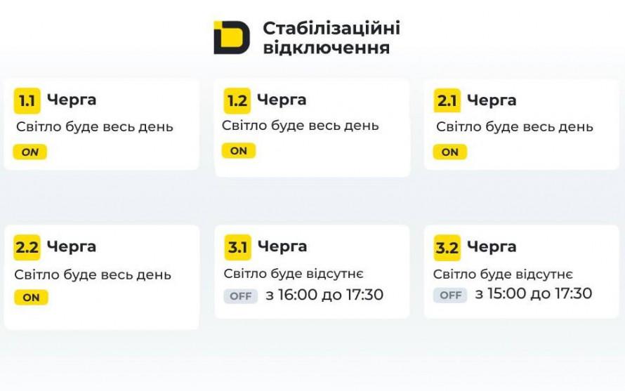 3.1 Черга: Світло буде відсутнє з 16:00 до 17:30.