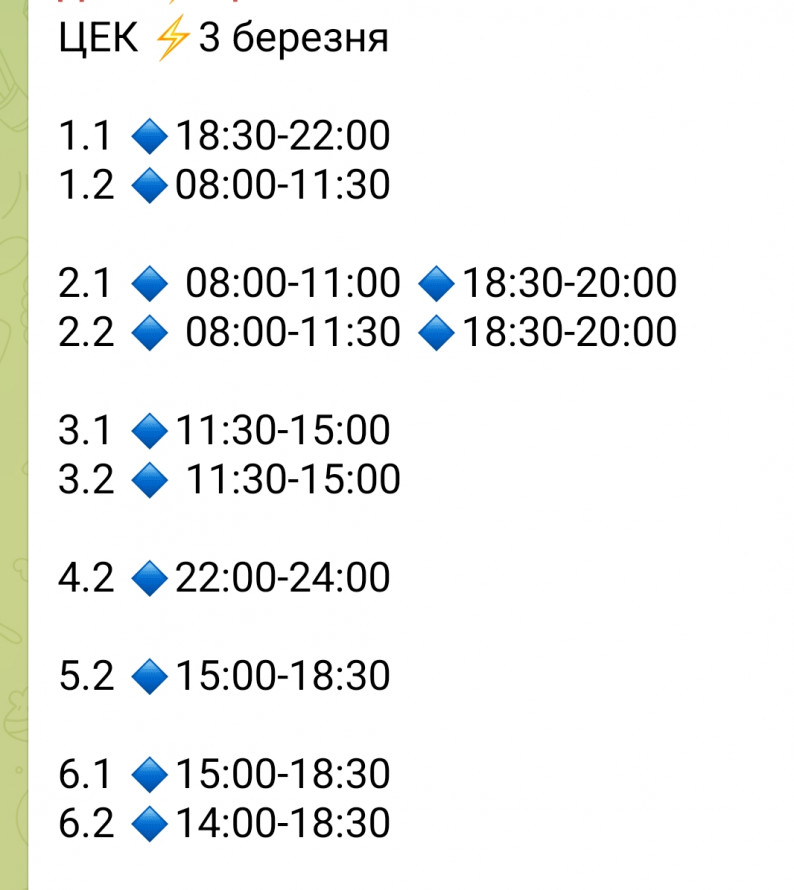 Розклад стабілізаційних відключень на Дніпропетровщині 3 березня