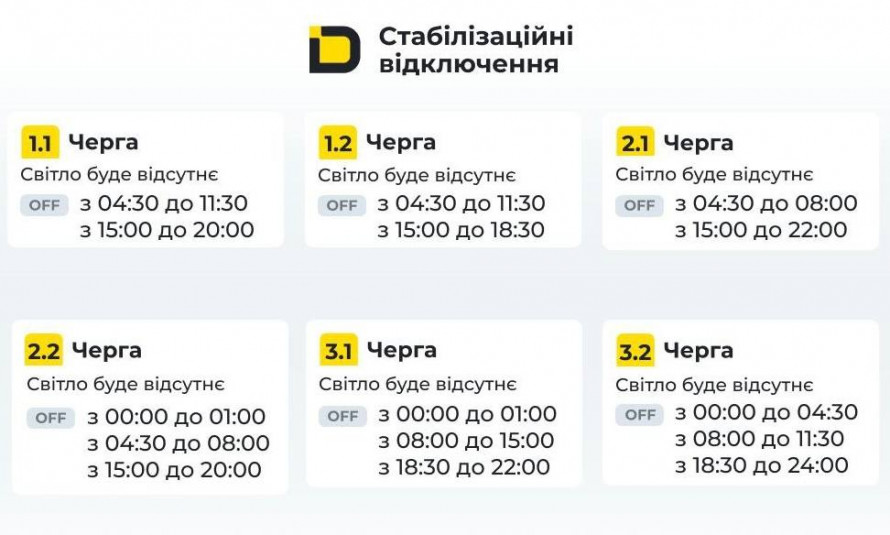 Для забезпечення прозорості та можливості планування, всі споживачі електроенергії на Дніпропетровщині розподілені на шість основних черг (груп), кожна з яких має свій індивідуальний графік відключень.