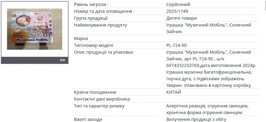 Музичні мобілі з важкими металами - у деяких моделях - свинець і кадмій, які накопичуються в організмі й можуть спричиняти гострі отруєння.
