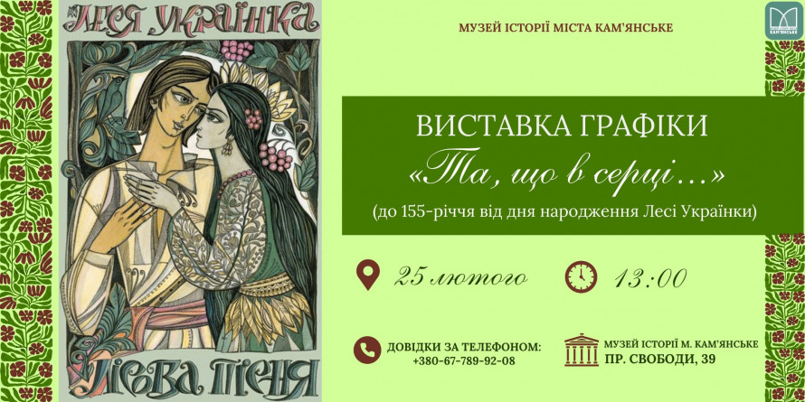Музей історії міста запрошує відвідати особливу експозицію «Та, що в серці…», де поезія Лесі Українки знаходить своє відображення у графічному мистецтві