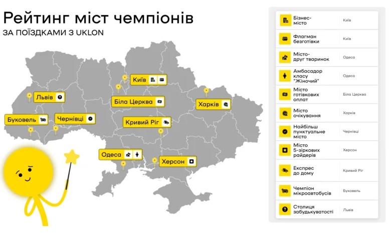 Київ: утримує першість за кількістю поїздок бізнес-класу та часткою безготівкових розрахунків. Також столиця сформувала понад 50% усіх замовлень у сегменті доставки.