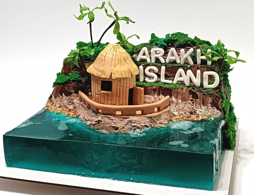 «Торти у вигляді острова не втрачають своєї популярності. Неймовірна краса природи, повітря, наповнене затишком та спокоєм, не можуть не заворожувати! І дуже важливо передати цю атмосферу у солодкому витворі. Загальна вага торта - 4,1 кг», - повідомляє кондитер Дмитро.