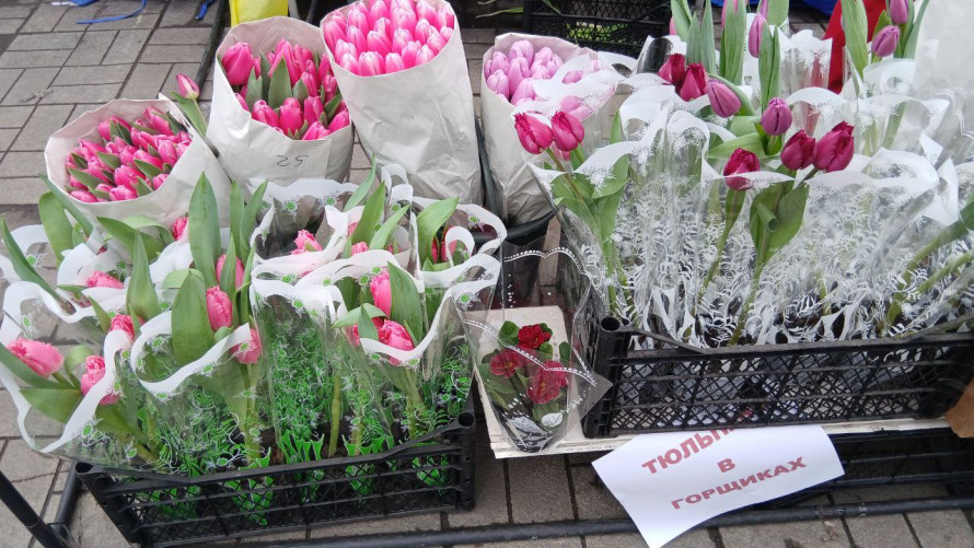 У центрі Кам'янського стартував передсвятковий продаж квітів. Традиційно головною локацією став сквер на проспекті Свободи, де розгорнулася жвава торгівля тюльпанами, мімозою та весняними рослинами в горщиках.
