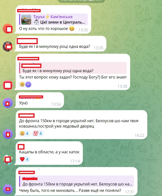 Багато кам’янчан наголошували на близькості лінії фронту (150 км) та зазначали, що кошти варто витрачати на укриття, бомбосховища, підтримку ЗСУ або нагальні комунальні потреби, а не на розваги.