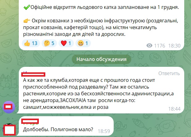 Деякі користувачі соцмереж висловлювали підозри щодо міської влади, звинувачуючи її у спробах «заробити» або «відмити гроші». Крім того, деякі мешканці вказували, що ковзанка минулого року була низької якості. І гарантій, що в цьому році вона буде гарніше - немає.