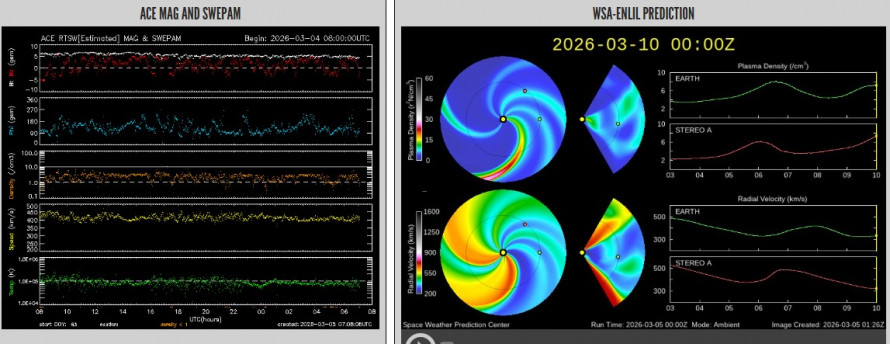 - За даними NOAA та інших міжнародних джерел: 27-денний прогноз вказує на "active conditions" 10 березня, що відповідає Kp близько 4 (помірне збурення). Це може бути пов'язано з корональними отворами на Сонці або слабкими CME. У середньому, рівень не перевищує G1 (слабка буря).