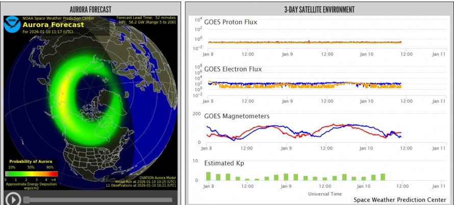 За даними NOAA, геомагнітна активність 13 січня може сягнути рівня G1 (слабкий шторм), з ймовірністю незначних збурень на середніх широтах (5-10%) та вищою на високих (20-25%). Kp-індекс очікується на рівні 4-5, що відповідає активності або слабкому шторму. Українські джерела прогнозують затяжну помірну бурю з 12 по 14 січня, з піками до Kp-5, що може викликати незначні коливання. Загалом, січень 2026 не матиме потужних штормів, але періоди активності очікуються 13-14, 17-20 та 29 січня. Ймовірність сильних впливів низька, але сонячні вітри від недавніх спалахів можуть посилити ефект.
