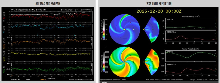 За даними різних джерел, геомагнітна ситуація на 17 грудня буде відносно стабільною, але з елементами неспокою. Зокрема, Центр прогнозування космічної погоди NOAA прогнозує, що вплив високошвидкісного потоку сонячного вітру досягне піку саме в цей день, з можливістю досягнення рівня G1 (слабкий шторм) у разі несприятливих умов. Це пов'язано з кількома корональними викидами маси (CME), які прямують до Землі з 16 грудня.