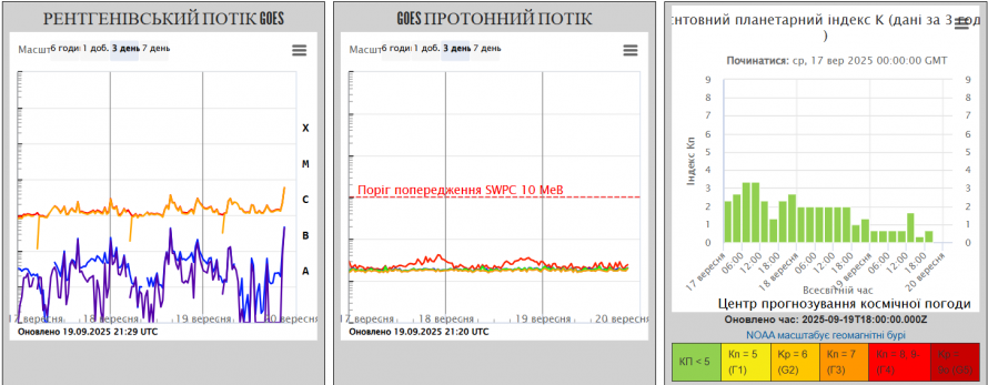 Субота, 20 вересня - геомагнітна активність буде низькою. K-індекс становитиме 1.7, що відповідає зеленому рівню. Це означає спокійну ситуацію без суттєвого впливу на здоров’я.