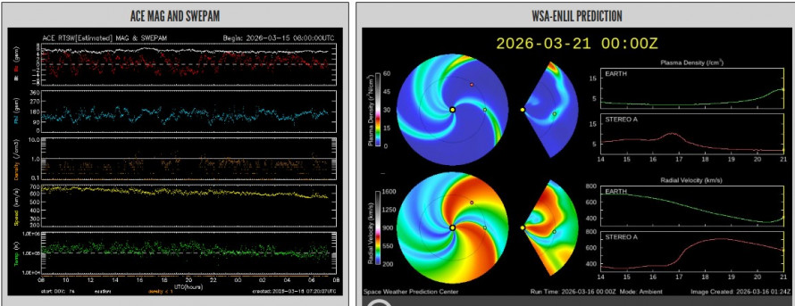 На 21 березня 2026 року NOAA прогнозує K-індекс на рівні 6, що відповідає помірній магнітній бурі (G2). Наступного дня, 22 березня, активність трохи знизиться до K-індексу 5 (слабка буря G1). Це пов’язано з високошвидкісним сонячним вітром від корональної діри, яка вже кілька днів впливає на магнітосферу Землі.