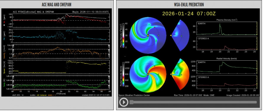 Прогнози базуються на 27-денному огляді сонячної активності та моделях WSA-Enlil, які враховують корональні діри та попередні спалахи. Наразі немає ознак потужних CME, спрямованих на Землю, після сильного шторму G4 19-20 січня.
