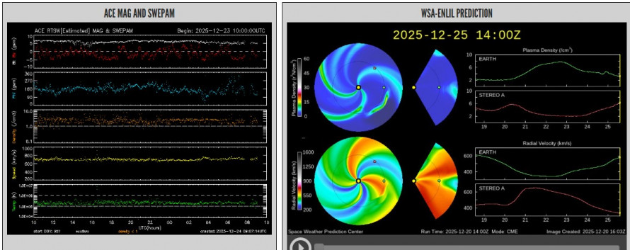 За даними SpaceWeather.com, активність сонячних вітрів може тривати до 25 грудня, з можливими посиленнями 24 грудня, що вплине на наступний день.