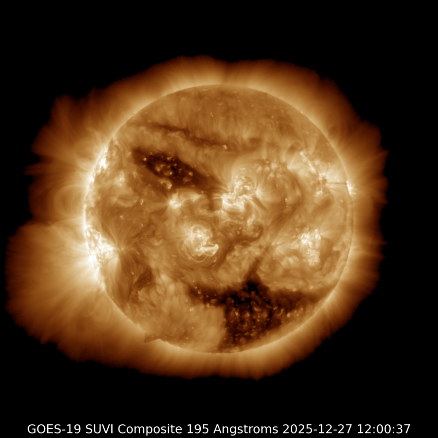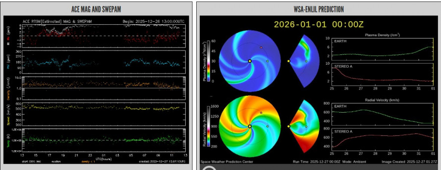 Згідно з 27-денним прогнозом від NOAA, значні шторми (G2) очікуються 30 грудня, а для 29 грудня активність не виділена як критична. Загалом, Kp-індекс може коливатися від 2-3 (спокійно) до 4 (збурено), без переходу до штормового рівня (Kp 5+).
