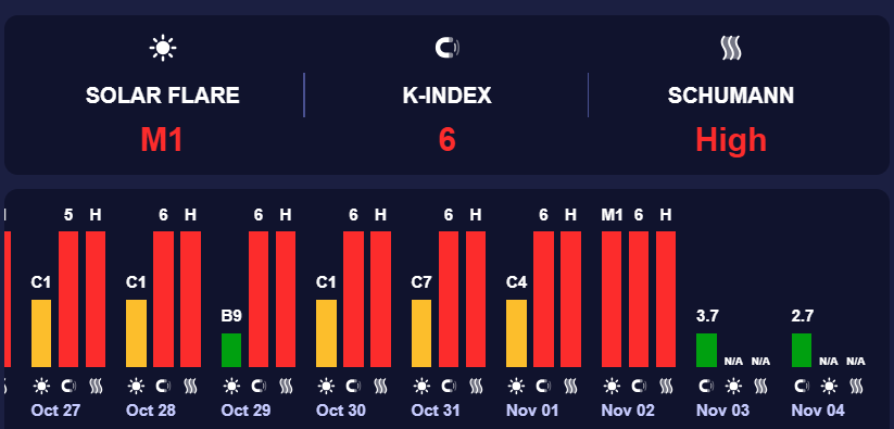 Індекс K може коливатися у межах 3-4, що відповідає рівню G0-G1 за шкалою геомагнітної активності. Це означає, що сильних коливань не прогнозується, однак можливий невеликий вплив на чутливих людей - втома, головний біль і коливання тиску.