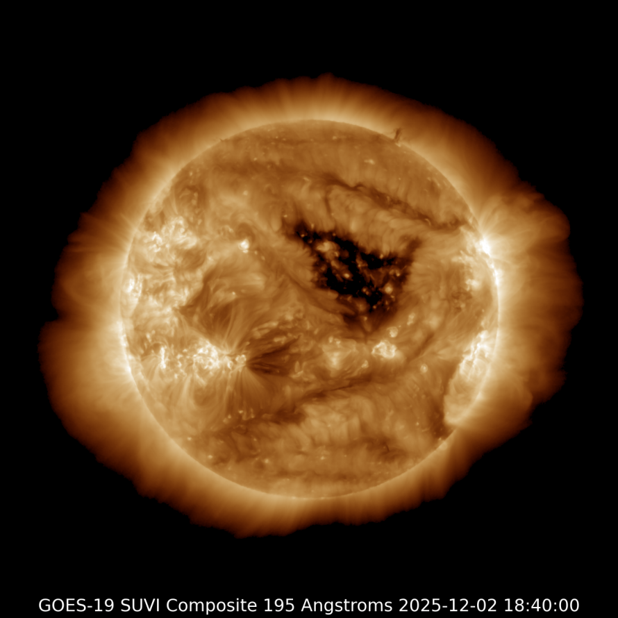 За даними NOAA SWPC, видано попередження про геомагнітний шторм рівня G2 (помірний) на 3-4 грудня через наближення швидкісного потоку сонячного вітру. Ймовірність шторму становить близько 75%, з можливим впливом на середні широти, включаючи Україну. SpaceWeatherLive прогнозує можливі збурення рівня G1-G2 з пізнього 3 грудня, що триватимуть до 4 грудня, через ефекти корональної діри.