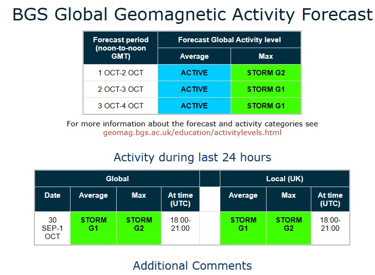 Інформація базується на даних, які надає Центр прогнозування космічної погоди (SWPC) NOAA. Вимірюється геомагнітна активність за шкалою від 0 до 9. Для позначення використовується планетарний К-індекс, якщо показник 5 і вище – то це сильна магнітна буря.
