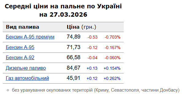Кореспонденти сайту kamenskoe.city порахували на прикладі середніх цін по Україні (вартість палива на АЗС ми взяли з сайту Мінфіну станом на 27.03.2026), скільки грошей повернеться вам на картку після однієї заправки.