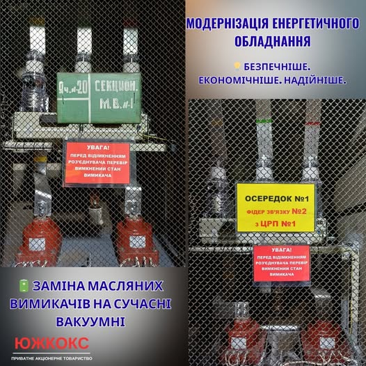 На зміну застарілій техніці прийшло нове покоління електрообладнання. Команда професіоналів "Южкокс" виконала встановлення трьох сучасних вакуумних вимикачів напругою 6 кВ, які є аналогом моделі ВВ/ТЕL 10-20/1000. Вакуумні вимикачі відомі своєю надійністю, меншими експлуатаційними витратами та високим рівнем безпеки.