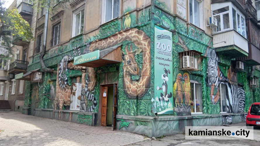 Особливо яскравим прикладом став магазин з продажу товарів для тварин, розташований на вулиці Медичній. Його фасад перетворився на справжній барвистий світ завдяки графіті із зображеннями екзотичних мешканців джунглів та саван Африки.