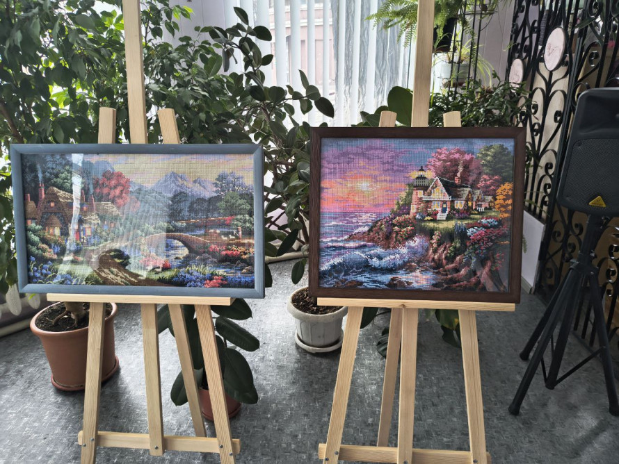 Бісерні роботи - це завжди результат кропітких годин, щоденної уваги до найдрібніших деталей та ювелірної роботи з кольором. Але ця праця варта того. Варто лише подивитися, як ці картини оживають. Коли на бісер потрапляють промені сонця, роботи набувають особливого, неймовірно красивого сяючого вигляду. Тож, завітавши до бібліотеки у денний час, ви зможете побачити справжню магію, створену руками майстрині.