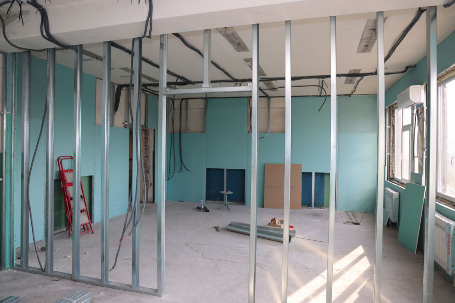 Вже виконано роботи з прокладання зовнішніх мереж – водопроводу, каналізації, опалення та системи вентиляції. Старі вікна замінили на сучасні металопластикові блоки. Тривають оздоблювальні роботи душових і гардеробних кімнат.