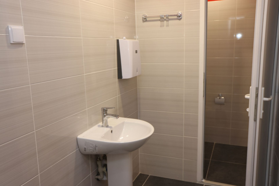 Тут було виконано масштабні роботи з прокладання водопроводу, каналізації та системи вентиляції, старі віконні склоблоки замінили на металопластикові, також повністю модернізували освітлення. Оновили сантехнічне обладнання, встановили бойлер для підігріву води та електричні сушарки для рук. Завдяки якісно виконаним оздоблювальним роботам приміщення набули естетичного вигляду у корпоративному стилі Метінвесту.