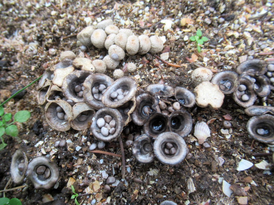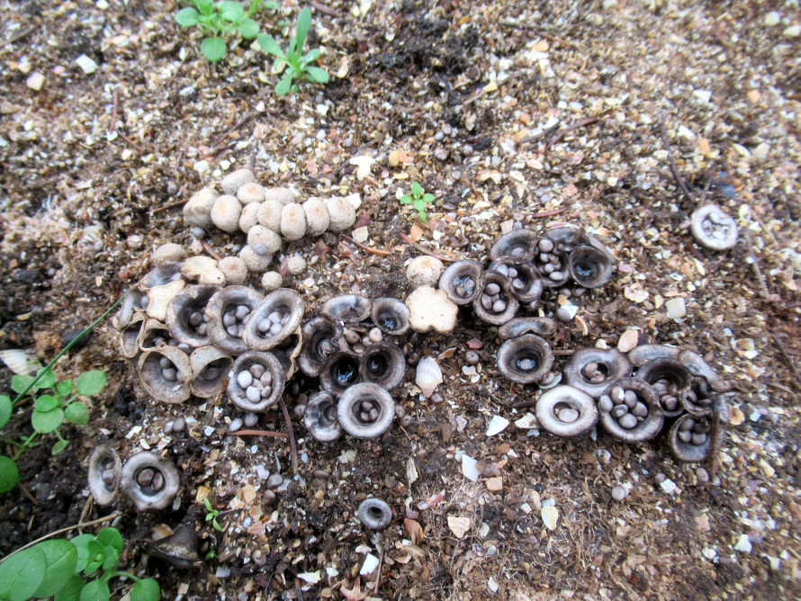 Плодові тіла висотою 1 – 1,5 см, діаметром 0,6 – 1,2 см, спочатку яйцевидної форми, пізніше обернено-дзвониковидної або обернено-конусовидної форми, з відігнутим краєм, всередині плодових тіл містяться перидіоли.