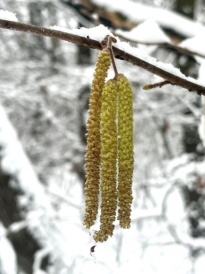 На світлинах, які опублікував заповідник, можна побачити, що на гілках ліщини вже розпустилися чоловічі суцвіття - довгі жовтуваті «сережки», які за найменшого подиху вітру розсіюють пилок. Це один із перших провісників весни, на який зазвичай чекають набагато пізніше.