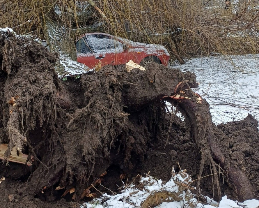 «Дерево таки впало... Тричі я подавала заявку в ЕДС Кам'янського протягом 2024–2025 років. Ніхто не приїхав, щоб спиляти сухі гілки чи верхівку. А ця верба невпинно хилилася і ось впала, пошкодивши два авто моїх добрих сусідів», - пише пані Ірина.