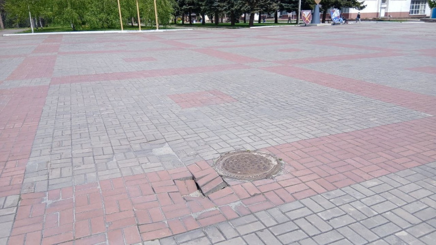 На окремих ділянках площі покриття буквально «йде під землю». Утворені ями та нерівності створюють суттєву небезпеку для: