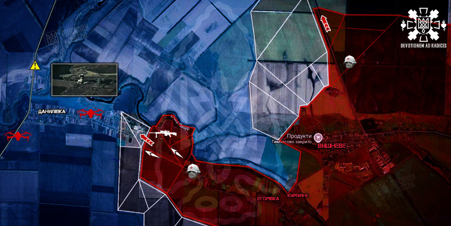 На північ від Вишневого зафіксовано наростання активності ворога. Спостерігається просування у напрямку населеного пункту Гай, де російські війська займають лісосмуги вздовж дороги та облаштовують опорні пункти. За оцінками військових, ці дії свідчать про підготовку чергового етапу наступу, який може розгорнутися найближчими днями.
