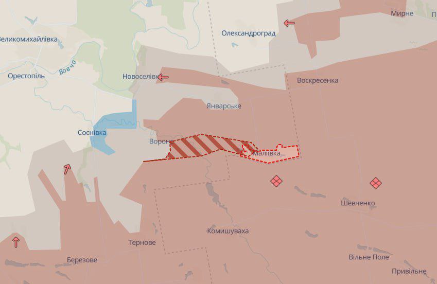 За даними аналітичного проєкту DeepState, російські війська зайняли село Маліївка. Водночас Сили оборони України продовжують утримувати ініціативу на інших напрямках.