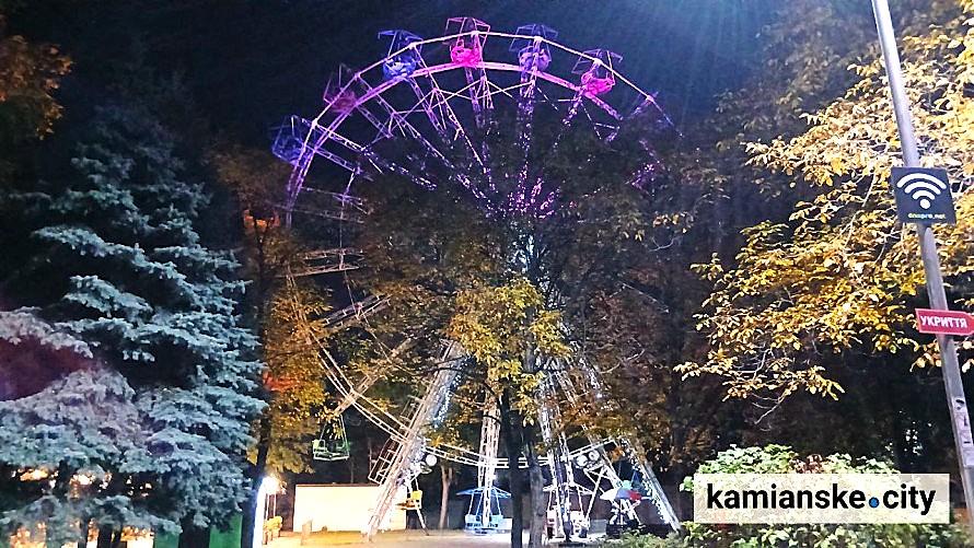 Колесо огляду має різноманітну підсвітку, що робить його центральною візуальною домінантою парку, яка привертає погляди здалеку та створює неповторний, святковий настрій осінніми вечорами.