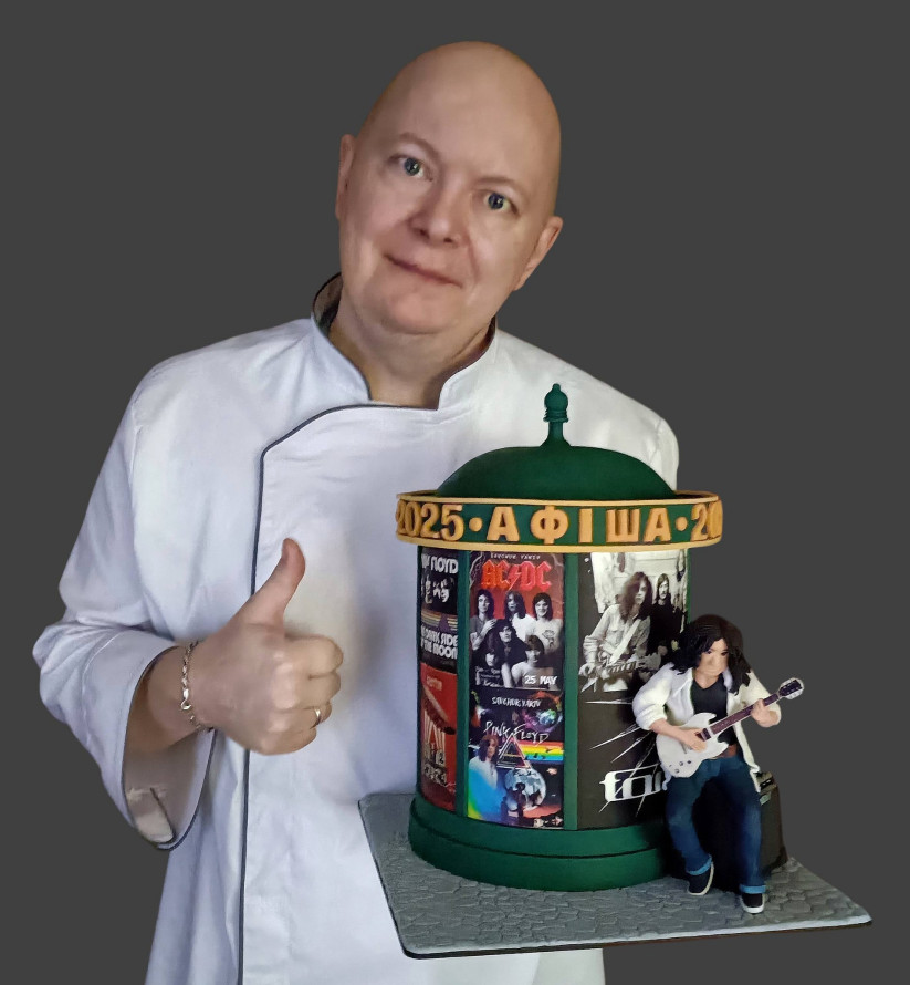 Нещодавно він представив новий шедевр - їстівну рок-афішу з фігуркою гітариста. Про це кондитер повідомив на своїй сторінці у Facebook.
